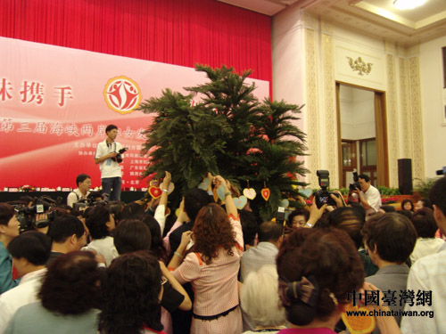 每位與會代表在心型精美卡片上寫下內心真摯的祝福,虔誠掛在會場的五棵“同心樹”上,表達她們對此次活動的衷心祝愿和對兩岸未來的美好期許,并現場祈愿夢想成真。