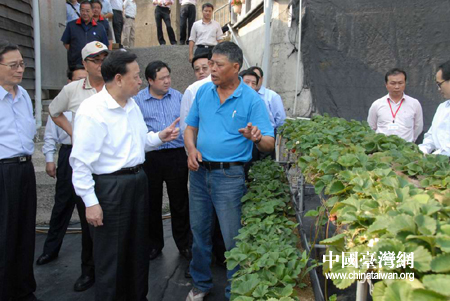 在武榮村山頂果園農場里,農戶范銹龍向羅清泉一行介紹了發(fā)展觀光農業(yè),銷售主要通過網路訂購和團體采購,草莓生產主要采取高架栽培方式,以及通過農會獲取農業(yè)創(chuàng)業(yè)貸款等情況。羅清泉饒有興致地聽著,并仔細詢問了果苗病害防治、農村飲水、污水處理、農民就醫(yī)等問題。他熱情稱贊范銹龍懂技術、善管理,是一位高素質的新型農民。認為農會組織在地方政府、市場和農戶間搭起了一座溝通的橋梁,這種組織方式值得借鑒。他還熱情邀請范銹龍先生到湖北來給農村干部和農民講課,開展農業(yè)技術交流。