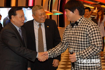 湖北省委書記羅清泉與中時旗下藝人小胖親切握手。(中國臺灣網湖北通訊員 陸勝 攝)