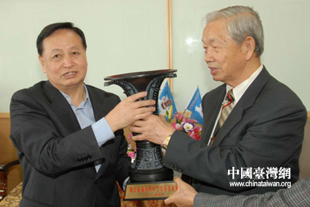 湖北省委書記羅清泉向臺北湖北同鄉會贈送禮品。(中國臺灣網湖北通訊員 陸勝 攝)