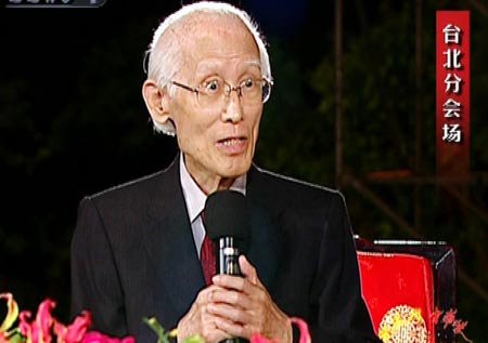 臺(tái)灣著名詩(shī)人余光中先生在臺(tái)北分會(huì)場(chǎng)