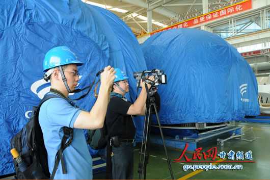 臺(tái)灣“中國(guó)電視公司”和中國(guó)時(shí)報(bào)的記者在酒泉參觀風(fēng)電裝備制造企業(yè)