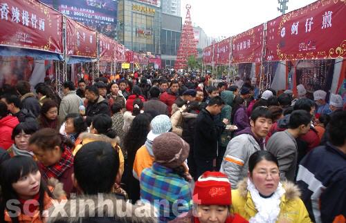 1月1日,2009成都臺灣風情周在成都萬達廣場拉開帷幕,130個小吃攤位、30多種臺灣小吃現做現賣,還有臺灣民間藝人的風情表演,現場游人絡繹不絕。