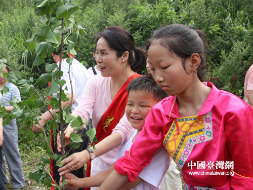 高金素梅與抗震小英雄林浩一起植下了平安樹(shù)。(中國(guó)臺(tái)灣網(wǎng) 宿靜攝)