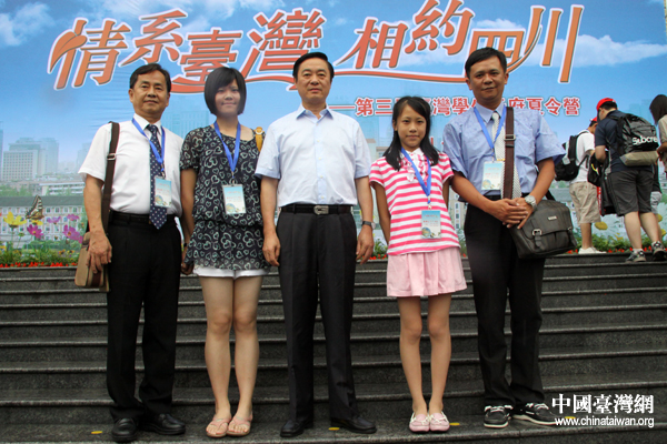 劉奇葆與前來參加第三屆“臺灣學(xué)生天府夏令營”活動的一家合影留念。(中國臺灣網(wǎng) 王偉 攝)