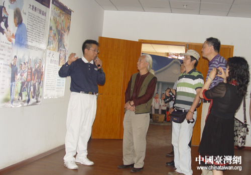 臺屬參觀慈濟在災(zāi)區(qū)救災(zāi)展覽。(德陽市臺辦 甘和林 攝)