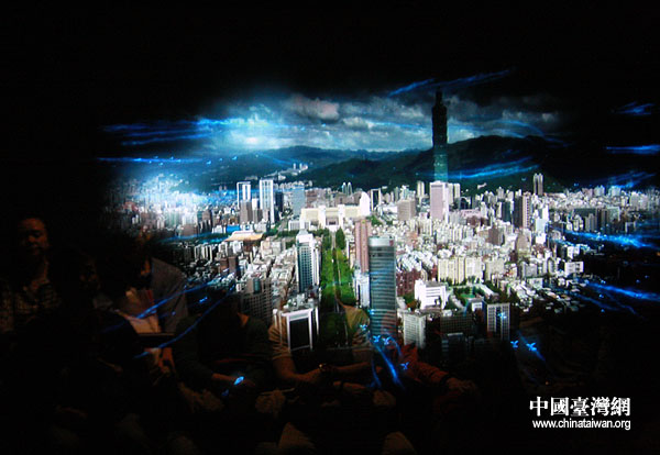 在虛擬的臺北101大樓中,360度3D劇院向人們展現臺北的生活味道。(中國臺灣網 鐘寶華 攝)
