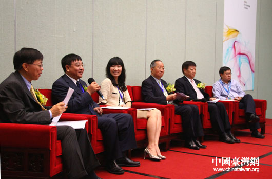 2010兩岸互聯網發展論壇6日上午將在臺北國際會議中心盛大開幕,來自兩岸互聯網產業菁英及學者專家出席了論壇。圖為與會嘉賓圍繞“兩岸互聯網、移動互聯網發展現況、應用及趨勢”進行互動論壇。(中國臺灣網發 梁忠儀攝)