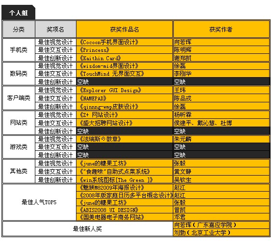 2010 Digital UI 優秀用戶界面設計大賽獲獎名單