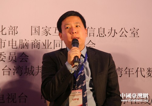 億貝大中華區及東南亞地區公共事務部總監唐磊在兩岸互聯網發展論壇互動論壇部分分享了在大陸網購的經驗。(中國臺灣網 于斯文 攝)
