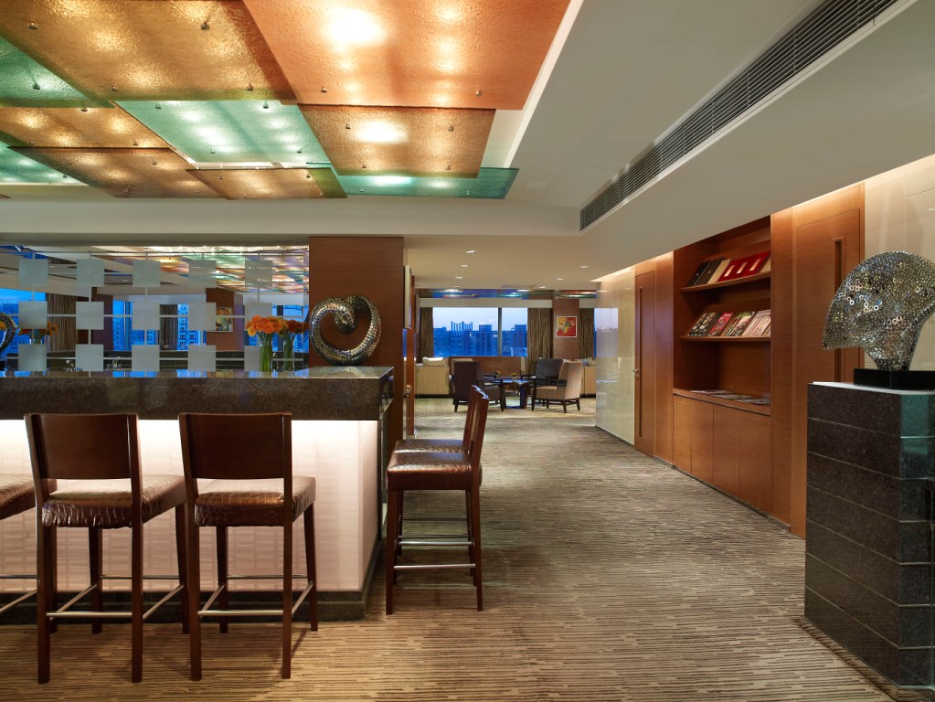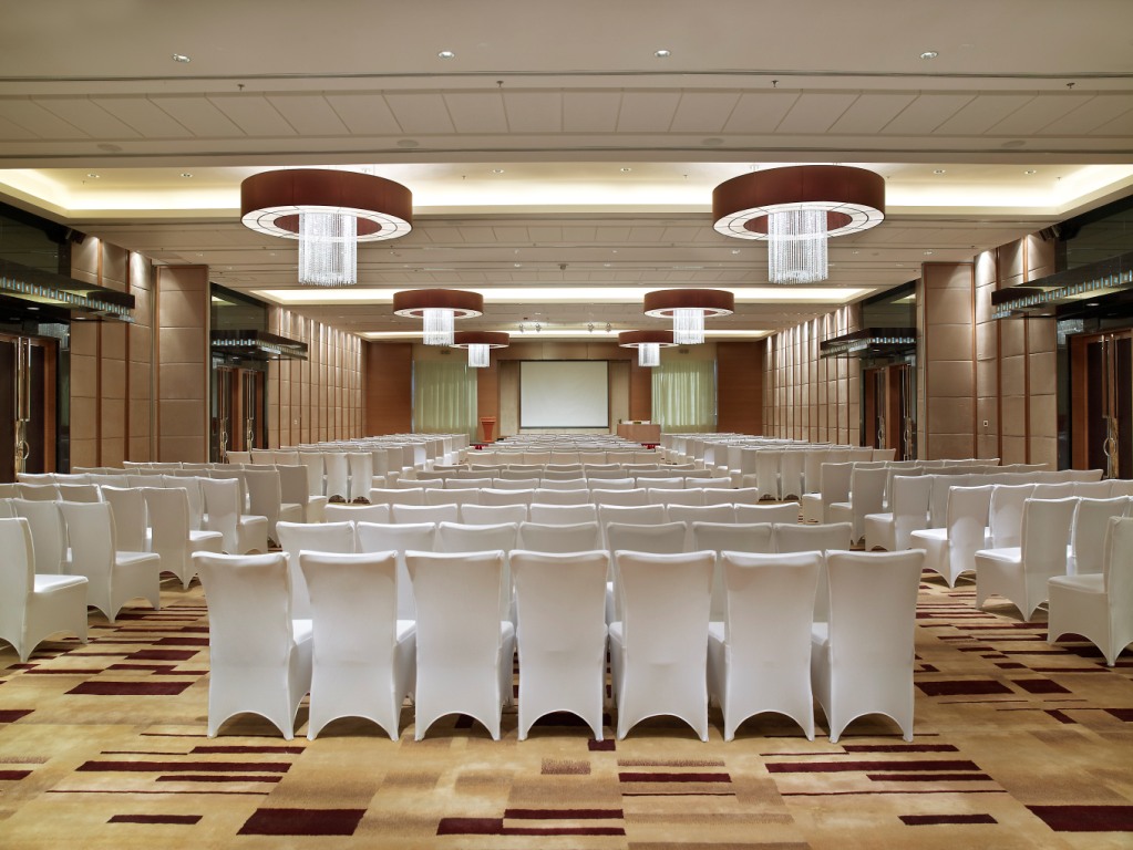 1127平方米的會議與宴會場地可同時容納966位顧客,是舉行公司會議、商務活動、大型慶典及其它活動的理想選擇。可容納720人座位的無柱式空間高挑大宴會廳和7間獨立宴會廳,快速的會議通道及團隊入口、先進的現代化與會設施以及專業的宴會團隊,確保您各種會議及活動的成功。寬敞、時尚的弧形宴會前廳更是賓客會議前小聚與絕佳休息之地。商務中心提供全面的綜合性服務,包括電腦工作室、私人會談室以及一系列的秘書服務。