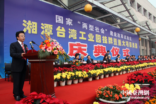 中國臺灣網11月16日湘潭消息 今天下午,作為國家“兩型社會”建設綜合配套改革試驗區之一,湘潭臺灣工業園舉行掛牌和新項目入園奠基儀式,參加“第四屆湘臺經貿交流合作會”的200余臺灣政商屆代表出席。
