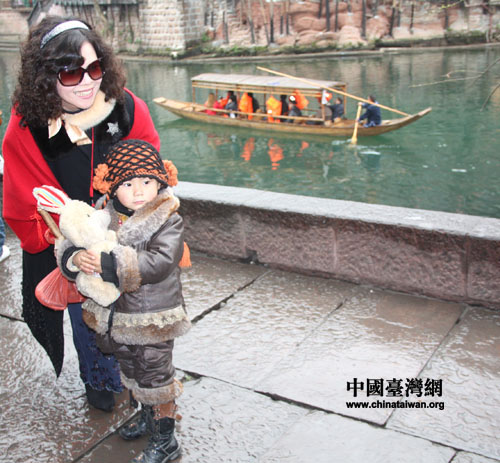 中國臺灣網2月27日湖南鳳凰消息 臺南市地方民意代表來湘參訪團今天游覽了風景優美的鳳凰古城,近40位來自臺南的民意代表、里長泛舟沱江,感受鳳凰古樸靈秀的自然風光,并訪問了城內沈從文故居、熊希齡故居及歷史博物館等人文景觀,體驗濃郁的湘西風情。