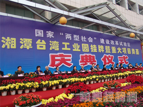 作為本屆“合作會”的重要內容,下午舉行的九華湘潭(臺灣)工業園揭牌暨項目奠基儀式取得圓滿成功。在湘潭設立臺灣工業園,對于促進湘潭與臺灣經貿合作與交流,提升湘潭產業層次,推進新型工業化進程具有十分積極的意義。