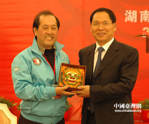 湖南省臺辦主任龔文密及部分湖南省政府領(lǐng)導(dǎo)、省臺辦領(lǐng)導(dǎo)參加了會見。會見后,雙方互贈(zèng)了禮物,隨后湖南省人民政府設(shè)歡迎晚宴,招待遠(yuǎn)道而來的寶島貴客。(李杰)