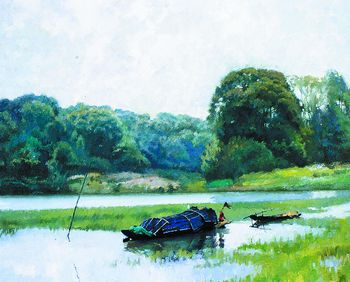 斜陽(蕭沛蒼簡介 湖南湘鄉人,1942年生。著名油畫家,湖南省優秀出版專家。油畫以風景見長。曾任湖南美術出版社副社長、社長;湖南省美術家協會第六屆副主席,第七屆榮譽副主席等職。) 來源:新華網湖南頻道