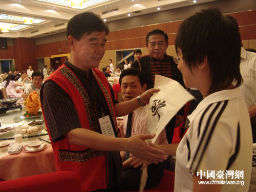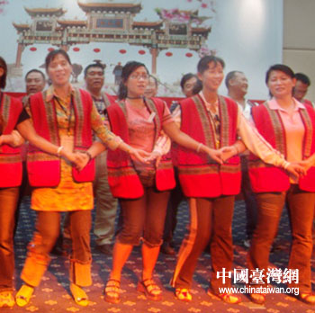 晚上,臺灣中小學(xué)校長參訪團(tuán)與湖南省常德市桃源縣中小學(xué)校同行舉行交流聯(lián)誼會。臺灣原住民建設(shè)協(xié)會理事長、參訪團(tuán)團(tuán)長帶領(lǐng)原住民校長們現(xiàn)場演唱了這首特別改編的《我們都是一家人》,“你的家住常德市,我的家在臺灣省,從前的時(shí)候是一家人……永遠(yuǎn)都是一家人……”用原住民最純樸的歌舞來表達(dá)幾天來,與大陸同行交流的心情與兩岸永遠(yuǎn)是一家的心聲。(文萃2006年08月08日)
