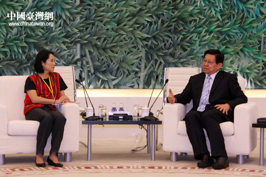 8月20日商務部部長陳德銘會見臺灣少數民族代表團團長高金素梅一行。(中國臺灣網 鐘寶華 攝)