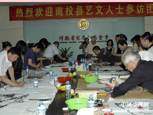 中國臺灣網8月4日鄭州消息 由宋慶齡基金會策劃組織的臺灣南投與河南書畫名家藝術雅集活動,日前分別在洛陽市華陽廣場國際大飯店和鄭州河南省宋慶齡基金會隆重舉行。據悉,這是臺灣南投與河南書畫名家的首次聯誼活動。