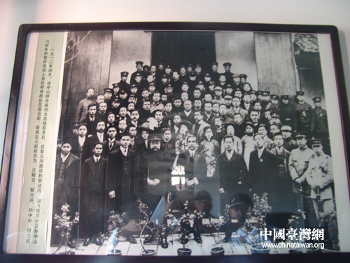 孫中山與鄂軍都督府歡迎人員在都督府后花園合影。 (攝影:陳寧)