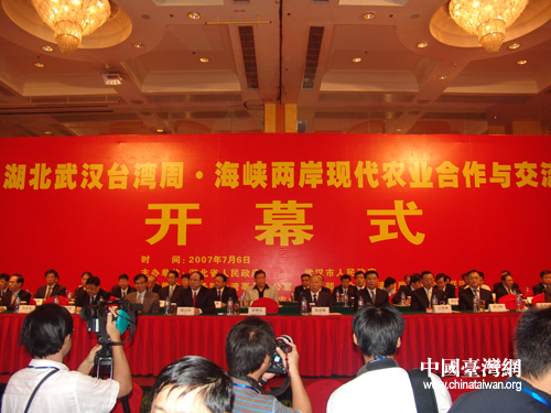 2007年7月6日-11日,第四屆湖北武漢臺灣周在武漢舉行。此次活動以“海峽兩岸農業(yè)交流與合作”為主題,吸引了兩岸400余嘉賓參與,會上達成的漢臺兩地農業(yè)合作項目17個計15億元。(攝影:陳寧)