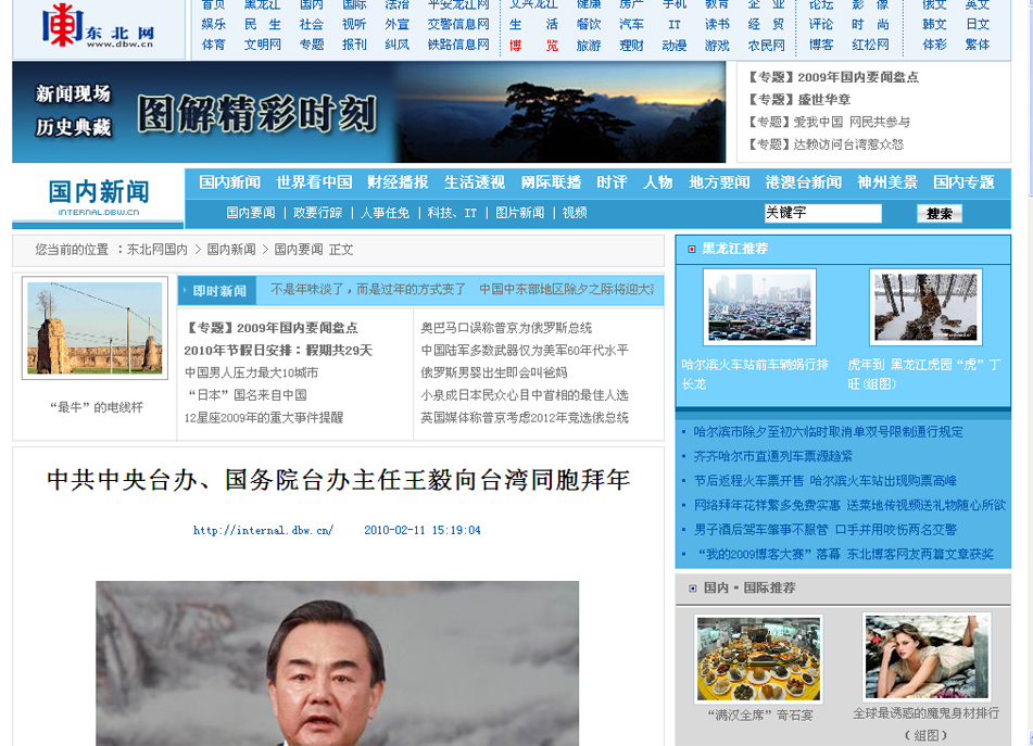 [東北網] 中共中央臺辦、國務院臺辦主任王毅向臺灣同胞拜年