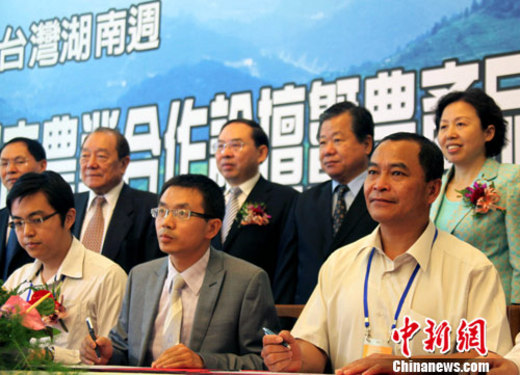 湖南省農(nóng)業(yè)產(chǎn)業(yè)協(xié)會(huì)、湖南省供銷合作總社與臺(tái)灣方面的“中國海峽兩岸農(nóng)業(yè)協(xié)會(huì)”、臺(tái)南縣農(nóng)會(huì)6日上午在此間舉辦的農(nóng)業(yè)合作論壇及農(nóng)產(chǎn)采購信息發(fā)布,是“2010年臺(tái)灣湖南周”的重要一環(huán)。除產(chǎn)品采購,兩地企業(yè)家還簽署了3項(xiàng)臺(tái)灣農(nóng)產(chǎn)品開拓湖南市場(chǎng)戰(zhàn)略合作框架協(xié)議。