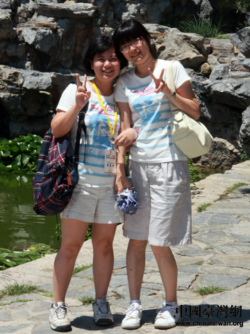 來自北京交通大學的張愛鑫和臺灣東吳大學的黃蕓羽特意身著同款衣服組成“海峽姐妹花”。(中國臺灣網 張維佳 攝)