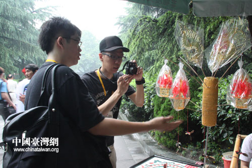 來自臺北海洋技術學院的曹瑞、李光麒喜歡街邊糖藝作品(中國臺灣網 李丹 攝)