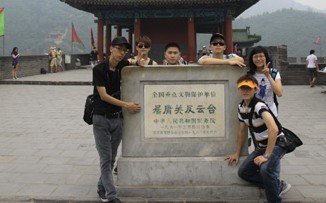 臺(tái)灣大學(xué)生在居庸關(guān)云臺(tái)前合影留念(中國(guó)臺(tái)灣網(wǎng) 趙婧 攝)