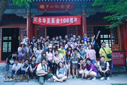 兩岸青年學生“追尋歷史的足跡”參訪團在香山孫中山紀念堂前合影留念。