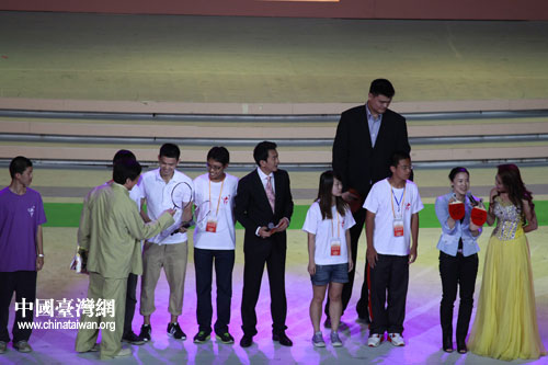 成龍、姚明、王楠、林丹等深受兩岸青年喜愛的演藝、體壇明星云集,為來自海峽兩岸的8名同學(xué)慶祝生日,送上各自準(zhǔn)備的禮物和簽名,以及對(duì)兩岸青少年未來的寄語和祝福。(中國(guó)臺(tái)灣網(wǎng) 普燕 攝)