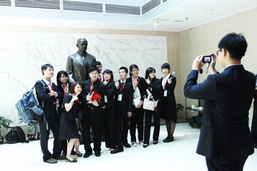 臺(tái)灣青年學(xué)生爭相在孫中山先生銅像前合影紀(jì)念