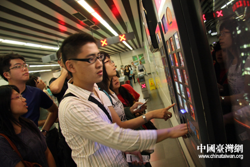 在北京亮馬橋地鐵站,臺(tái)灣同學(xué)正在打印餐廳優(yōu)惠券。(中國臺(tái)灣網(wǎng) 王偉 攝)