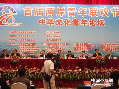 中華文化青年論壇標志首屆兩岸青年聯歡節正式開幕,全國人大常委會副委員長許嘉璐、團中央書記處第一書記周強、福建省省長黃小晶、國務院臺辦副主任葉克冬等出席論壇。