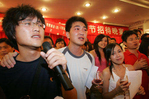 昨天下午,兩岸青年學(xué)生共同游覽了鼓浪嶼,而今天,他們將分赴五地進(jìn)行民俗考察活動,并在考察結(jié)束后直接返程。所以,昨晚的晚宴也就成了青年同學(xué)們在一起大歡聚的最后機(jī)會。兩岸青年學(xué)生,特別是參與了此次“唱響明天”校園歌手邀請賽的同學(xué)們,共同唱出一首首打動人心的歌謠,讓所有在場同學(xué)包括出席招待晚宴的領(lǐng)導(dǎo)們?yōu)橹袆印#ㄧ妼毴A)