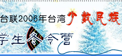 由中華全國臺灣同胞聯誼會主辦的“全國臺聯2006年臺灣少數民族青年學生冬令營”于2006年2月8日至15日在吉林和北京舉辦,本次活動吸引了來自臺灣相關高校的120多名少數民族青年大學生,他們將在為期8天的冬令營中,參觀長春、北京歷史悠久的名勝古跡;飽覽祖國北方千里冰封,萬里雪飄的壯麗美景;與大陸大學生進行零距離的交流。我網記者屆時將隨營采訪,報道此次活動的豐富動態。敬請各位網友密切關注。