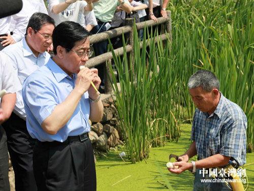 書記現(xiàn)場(chǎng)試吃(浙江臺(tái)辦 王健 攝)