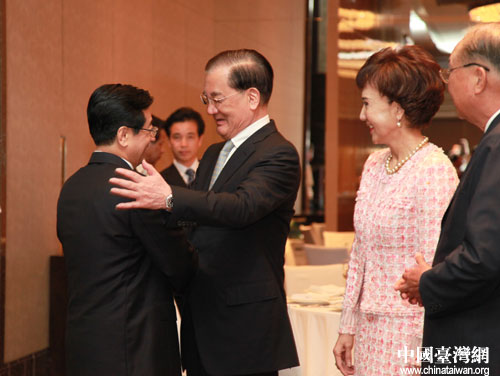 連戰及其夫人歡迎趙洪祝書記一行的到來。(浙江臺辦王健攝)