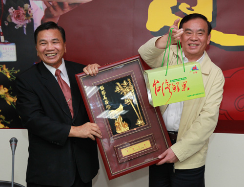 燕巢鄉鄉長吳德雄向呂祖善省長贈送當地水果(浙江省臺辦王健攝)