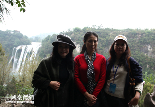 進入黃果樹瀑布景區后,臺灣嘉賓一路不停地直奔瀑布,從聽瀑到觀瀑的小段路程似乎都覺得漫長,一直問,“怎么還沒到?”聽導游講,目前已接近枯水時節,黃果樹大瀑布和一個星期前來看,都不一樣,此時有種“瘦”之美。嘉賓們紛紛約定下次漲水時節時再來看一次。“漲水時節,如蛟龍翻騰、浪花飛濺、水珠飛揚,直瀉瀑布下的犀牛潭;枯水時節,瀑布猶如萬縷銀絲披掛、輕柔多姿、又是另一番風情。”