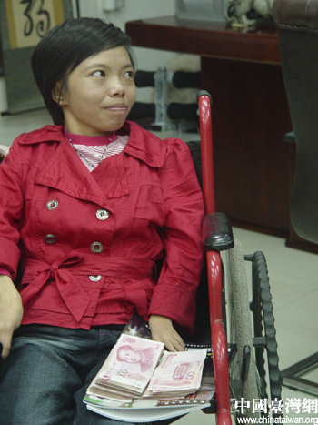 中國臺灣網9月30日貴陽消息 9月28日上午,手腳高度殘疾的年輕女子吳雪飛坐著輪椅,在同為殘障人士的未婚夫及親友的陪同下,帶著以口含筆的畫作和深情洋溢的感謝信來到貴陽市臺協會長、貴州藍氏關系企業董事長藍贊登先生的辦公室,感謝藍先生五年前慷慨解囊,饋贈電腦,使她找到了愛情且將于中秋前夕喜結連理。此時的吳雪飛不會想到,她的知恩感恩,使她得到了更多意想不到的幫助。