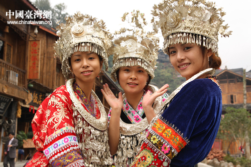 與苗寨姑娘合影留念(中國(guó)臺(tái)灣網(wǎng) 楊永青 攝)