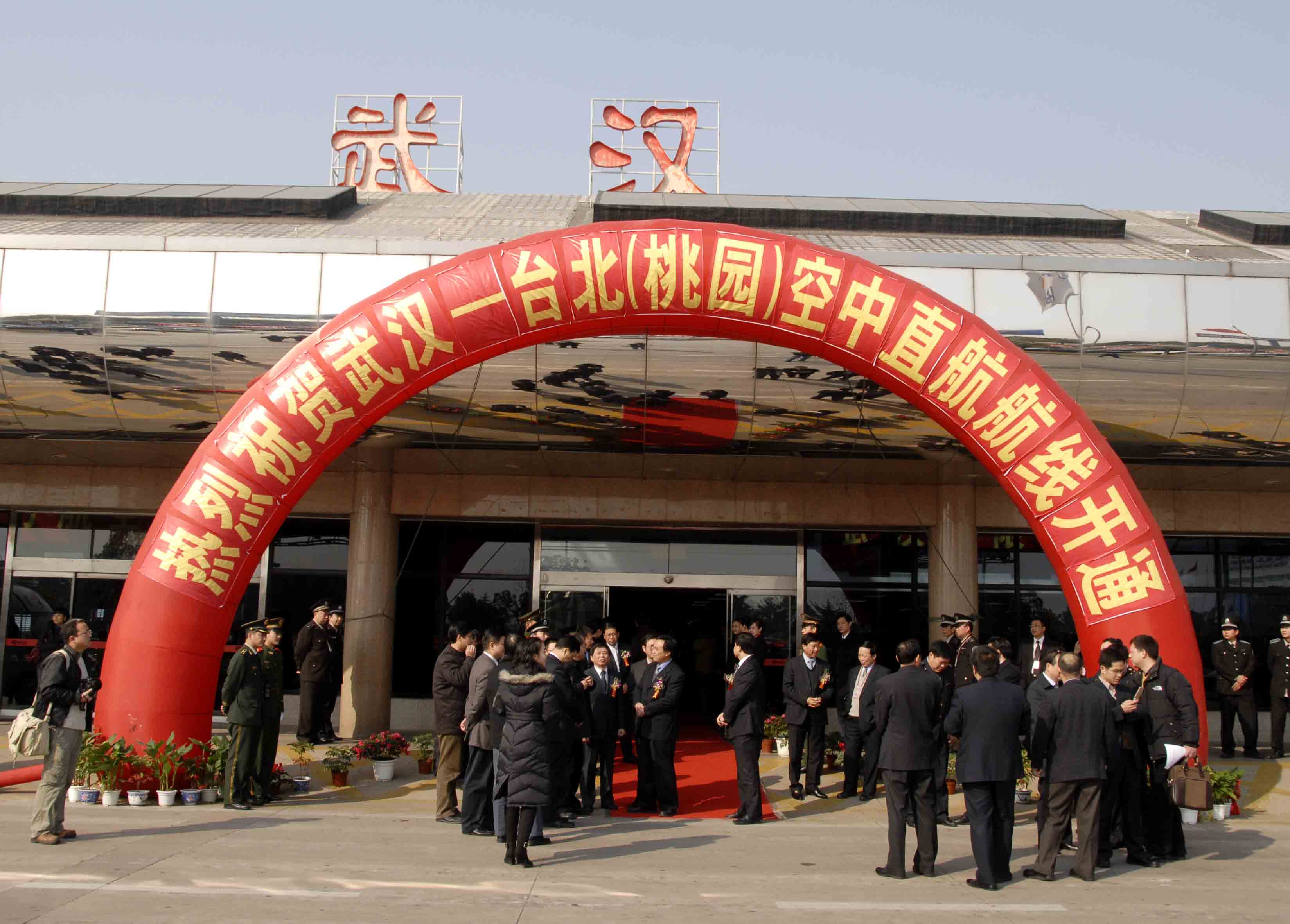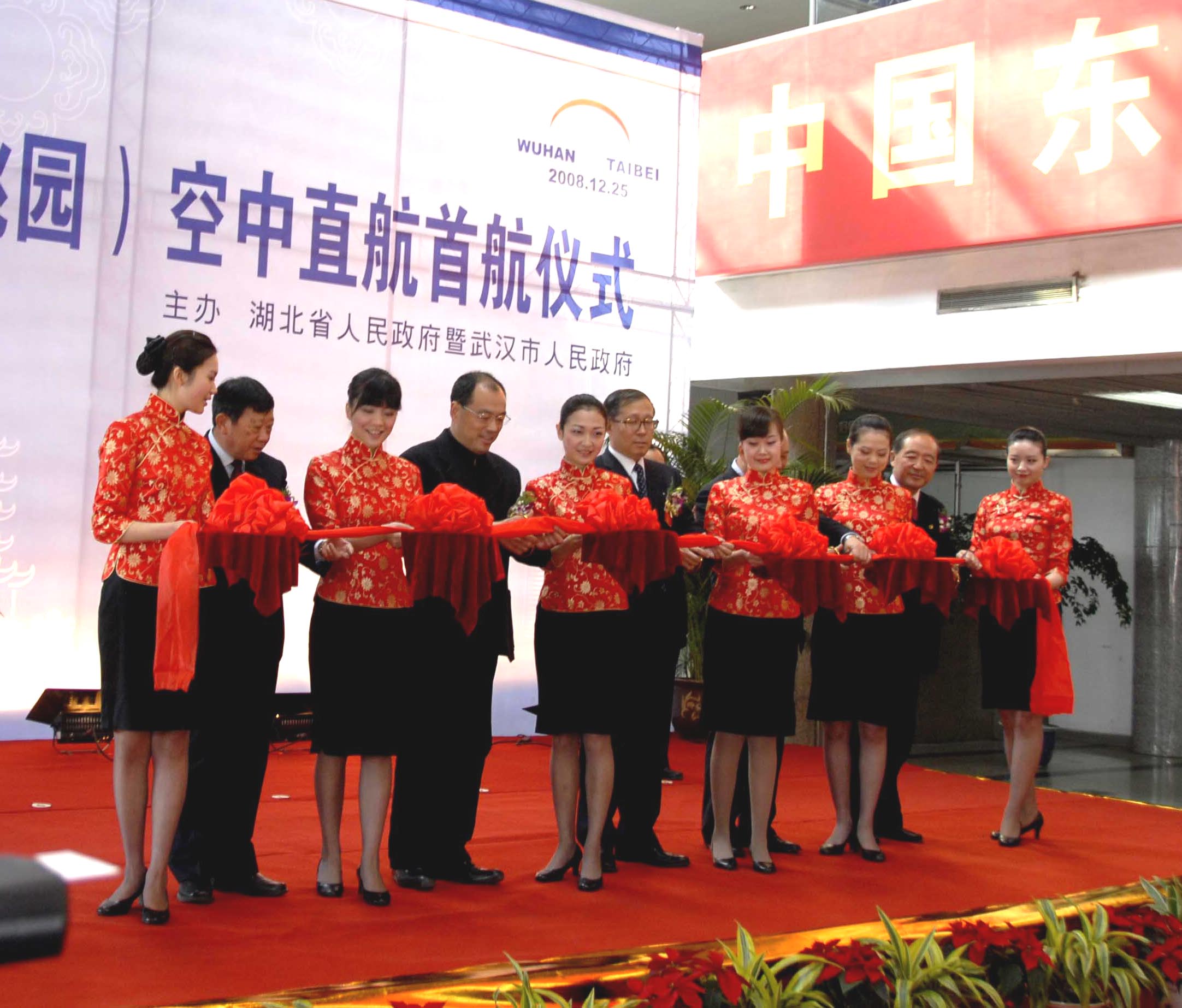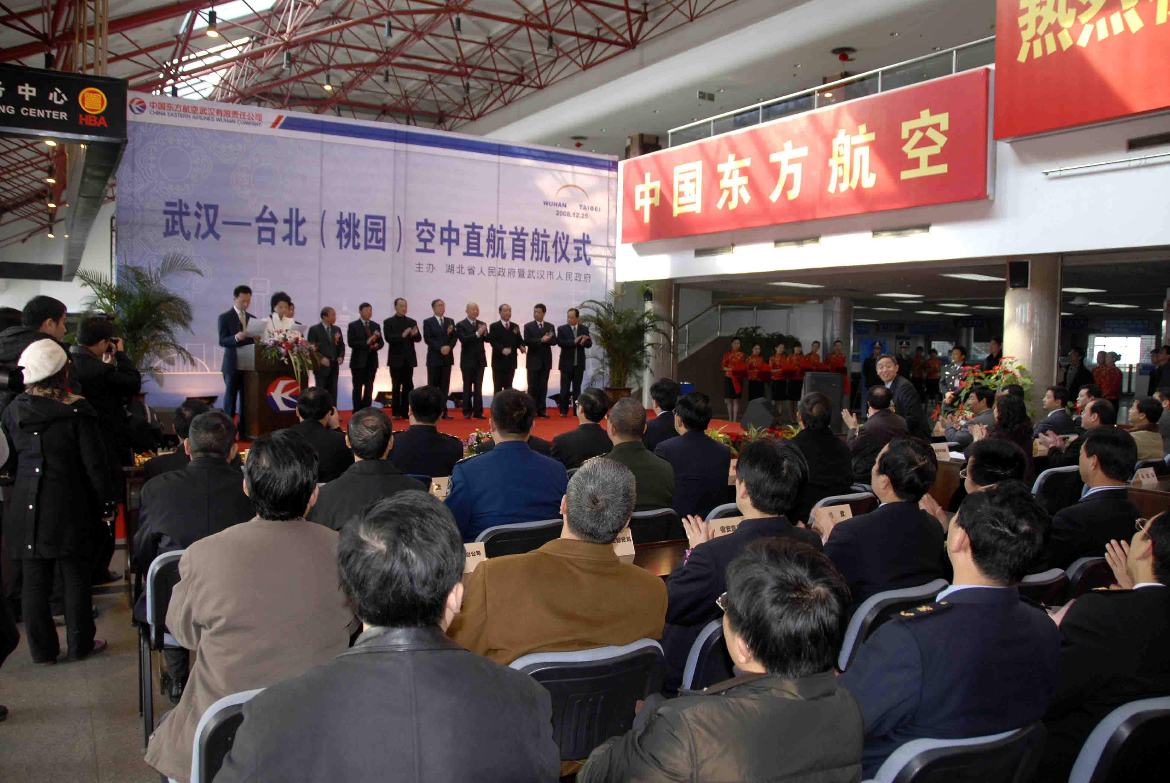 12月25日中午,武漢天河機場舉行了熱烈而隆重的武漢至臺北直航首航儀式。湖北省、武漢市領導中國東方航空公司等相關部門的領導及嘉賓共200余人參加了首航儀式。湖北省省長李鴻忠宣布武漢至臺北空中直航正式開通。(武漢臺辦、中國臺灣網聯合發稿)