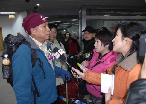 臺灣旅客在機場接受新聞媒體的采訪 攝影:嚴越培