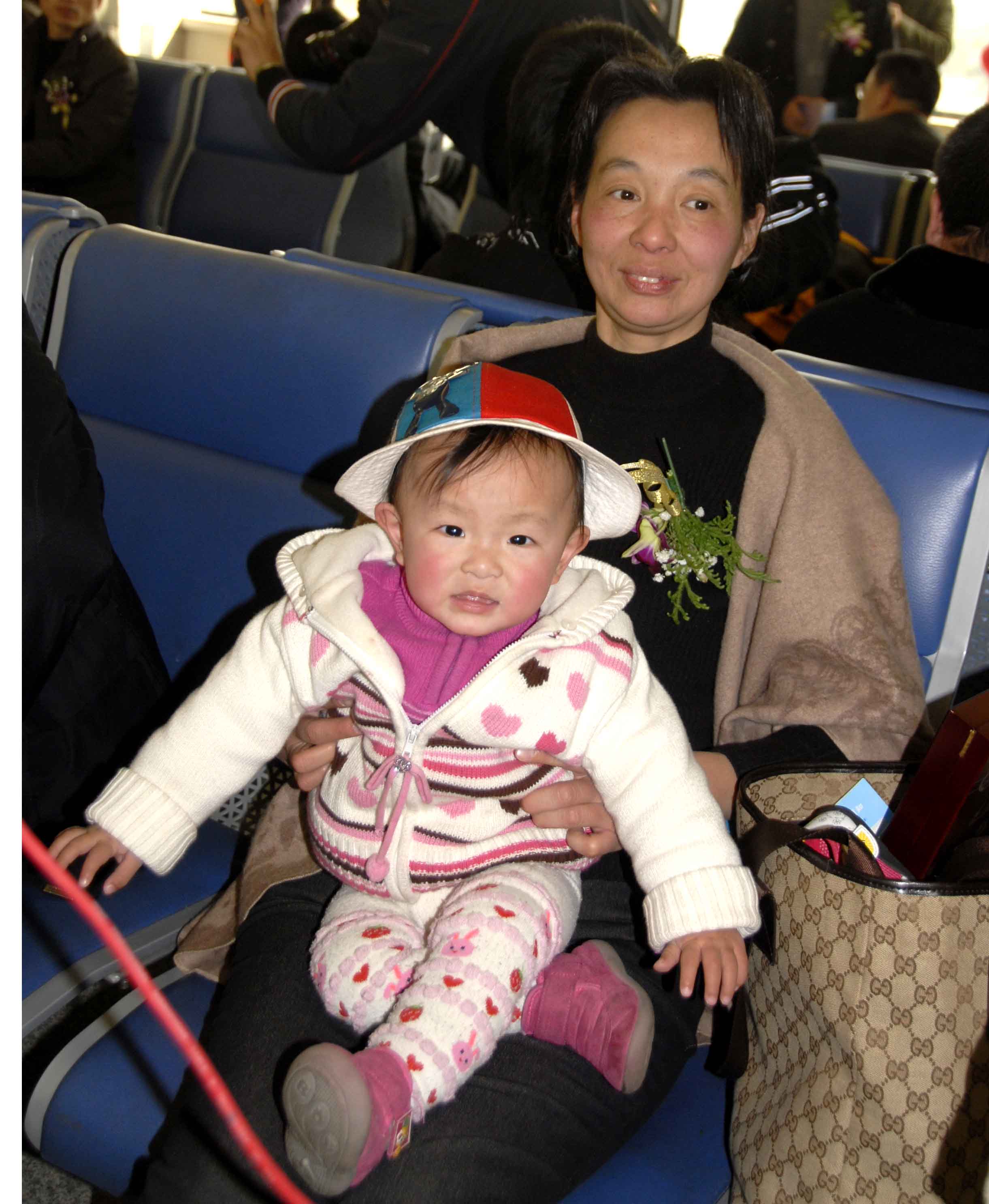 只有兩歲的劉家瑩是首航航班中年齡最小的乘客攝影:嚴越培