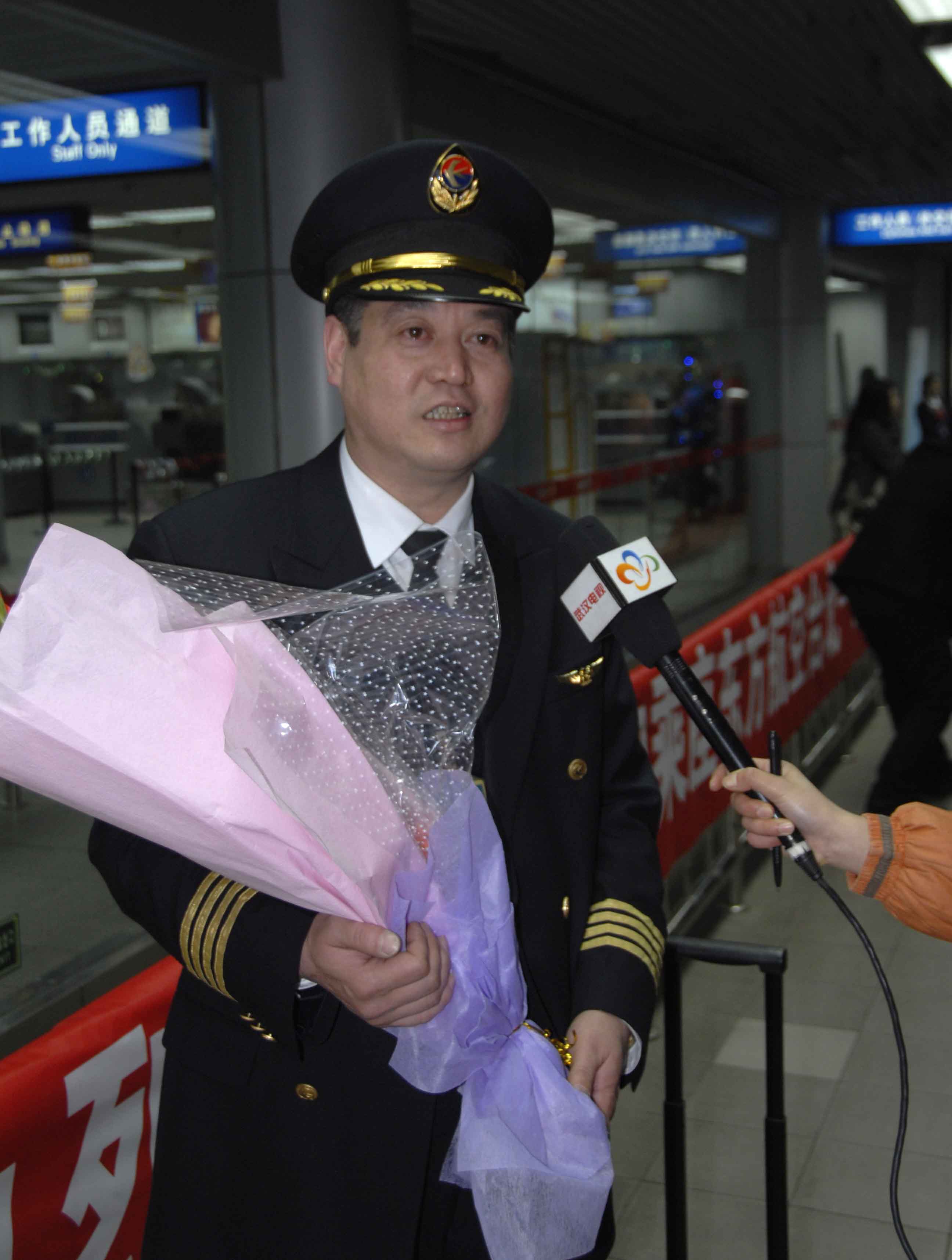 “直飛的感覺真好”擔任漢臺首航直飛的機長吳春洋接受記者采訪 攝影:嚴越培