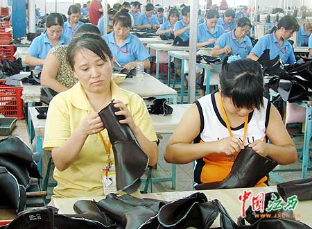 黎川另一家臺資制鞋企業祥昱鞋業公司06年9月落戶,現部分建成投產,上半年完成工業產值2000多萬元。(中國江西新聞網記者 王凱 攝) |