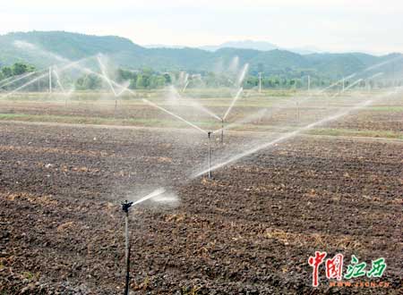 江西金源農業開發公司先進的有機菜場噴灌系統。(中國江西新聞網記者記者 王凱 攝)