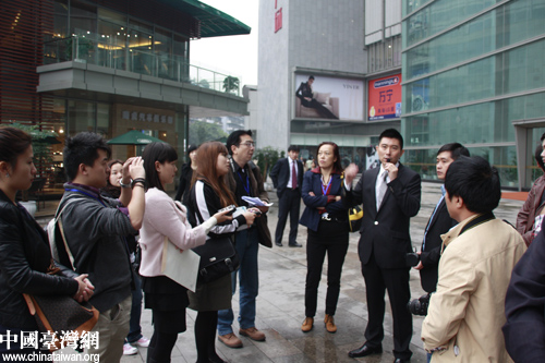 重慶日月光廣場項目負責人為兩岸媒體記者介紹情況(中國臺灣網 程軼文攝)